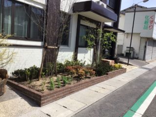 ご依頼頂きレンガ積みと自然形の高木植栽、またグランドカバーに気を使いました