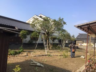 田川市のK様邸の強剪定をしました 2023-03-28 5年以上、手を入れていないので随分荒れていましたカイズカは間引きをし手の次回から手間のかからないようにしました産廃処分が4t車で2台分出ました 作業前 作業後 作業中 伐採と間引き状況
