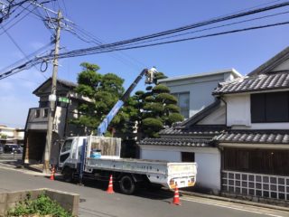 ラカンマキは20m近く有るので高所作業車を使用しています